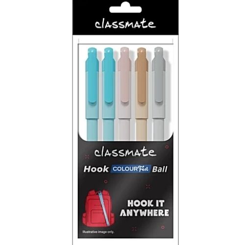 Classmate Hook Colourfest Ball Pen comes in 4 attractive pastel body shades with a premium matte finish and a unique industry 1st clip design which allows you to hook your pen anywhere. You can flaunt the pen among your friends by hooking on to your bag zip, id card, trouser loop, etc. The pen is available in blue ink shade and comes with a 0.7mm tip for a smooth writing experience. Attractive Pastel Body Colours Unique & industry-first clip design 0.7mm tip for smooth writing Both Blue & Black ink shade available