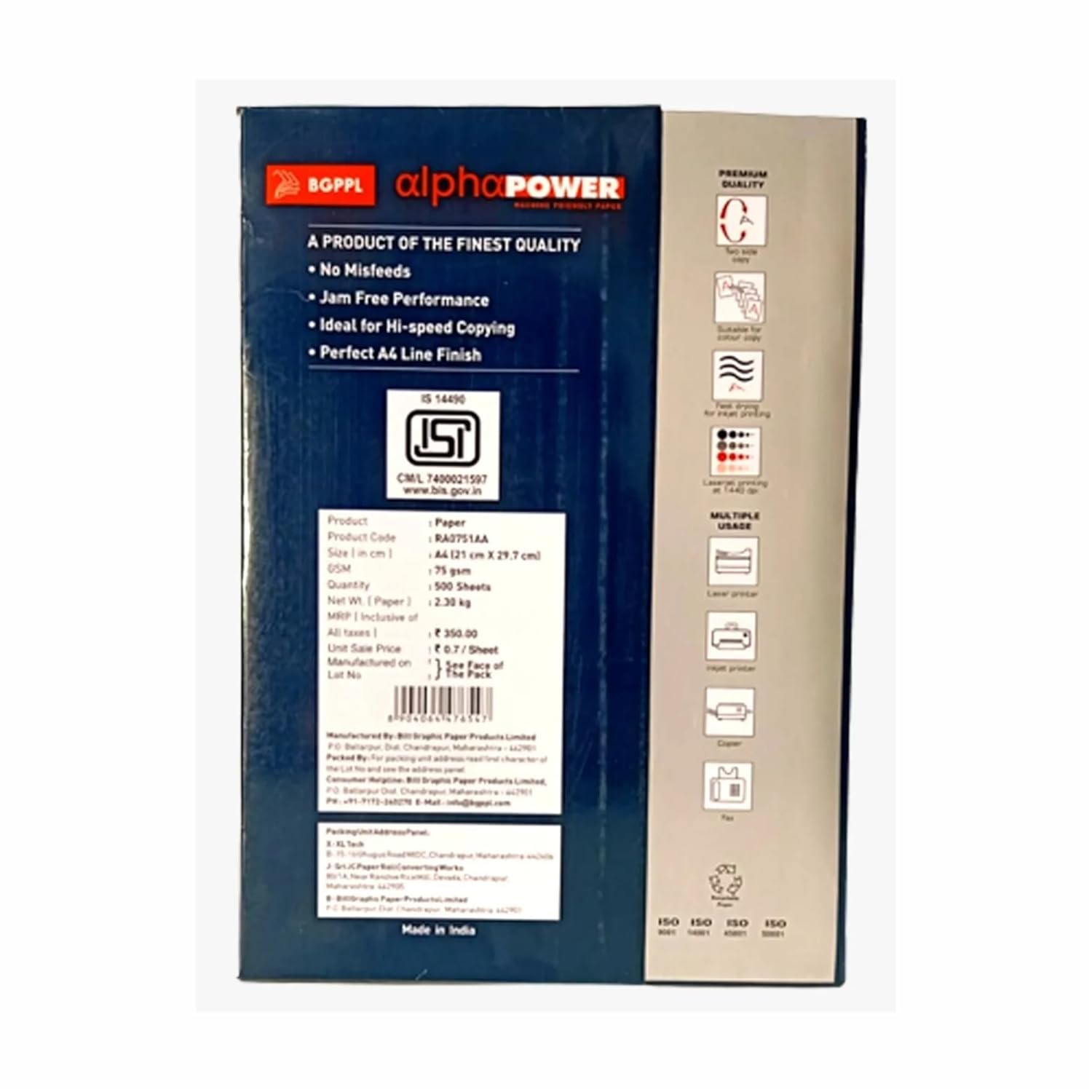 These copy papers are of super fine quality and have paper density of 75 GSM. These papers are lightweight and will give you an extra smooth and detailed printing experience. They have a high density and are lightweight which give you faster ink drying. You can print these papers by using any multicolour or black ink without the fear discolour prints. These copy papers give you a print at 1440 dpi. This makes it easier for you to print high quality images without any inconvenience. These copy papers come in a bundle of 500 sheets. They are long lasting and will give you a better printing experience for a long time.